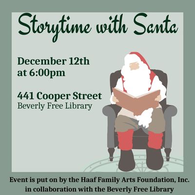 Ho ho ho! Everyone's favorite holly joy guy will be appearing at the Beverly Free Library on Friday, December 12th at 6pm. Wear your favorite jammies and settle in for a story with the big guy himself! There will be time after for photos and time with Santa- so don't miss out!